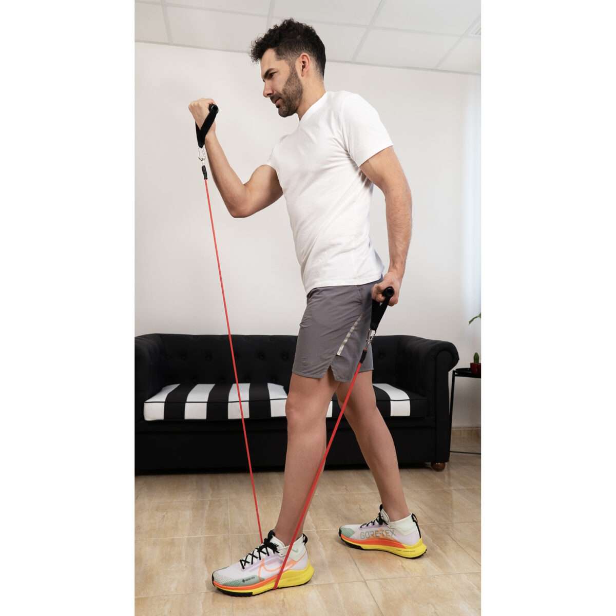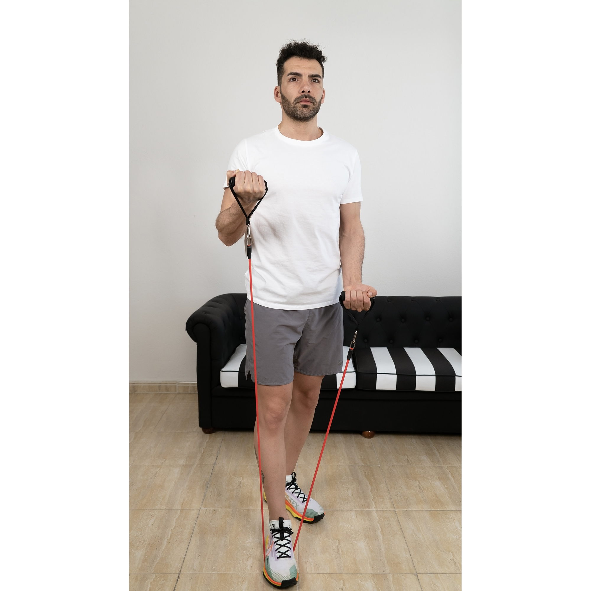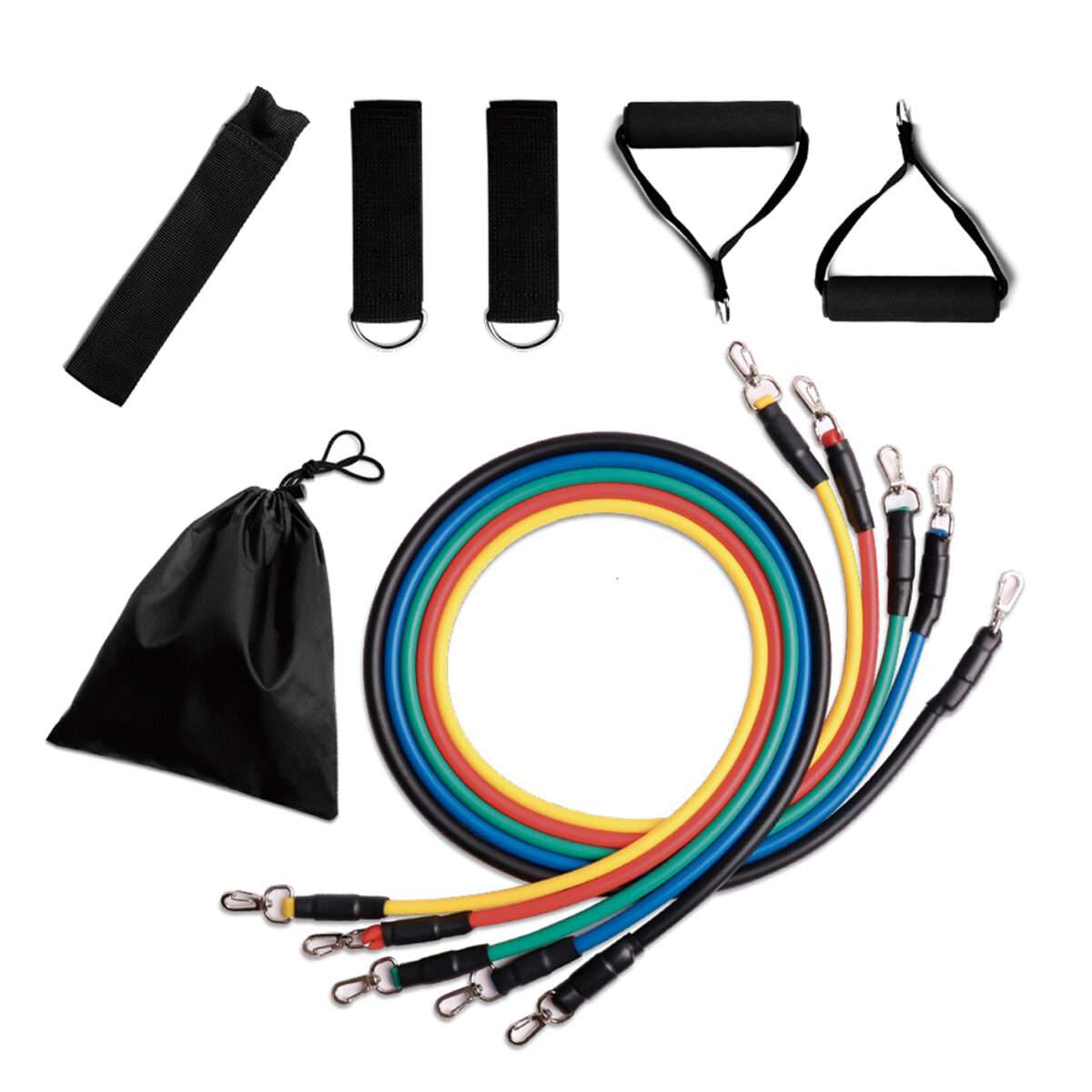 De skumbelagda handtagen ger ett bekvämt och halkfritt grepp, vilket gör träningen stabil och säker. Tack vare de praktiska metallkrokarna kan banden enkelt bytas och kombineras för att justera motståndet efter behov. Den kompakta storleken gör setet perfekt för hemmaträning, resor eller träning utomhus.