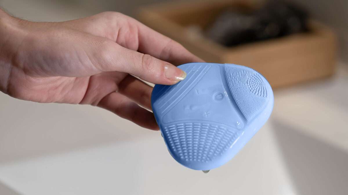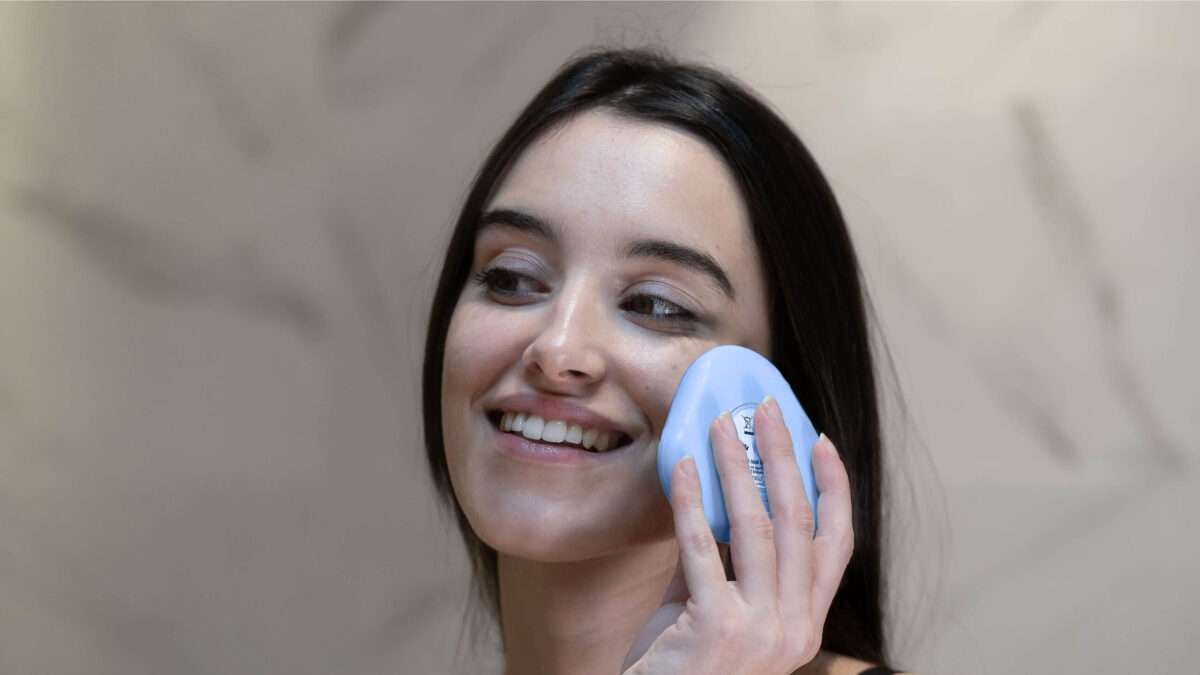 För borsten försiktigt över huden i små cirkulära rörelser – undvik att trycka eller skrubba.